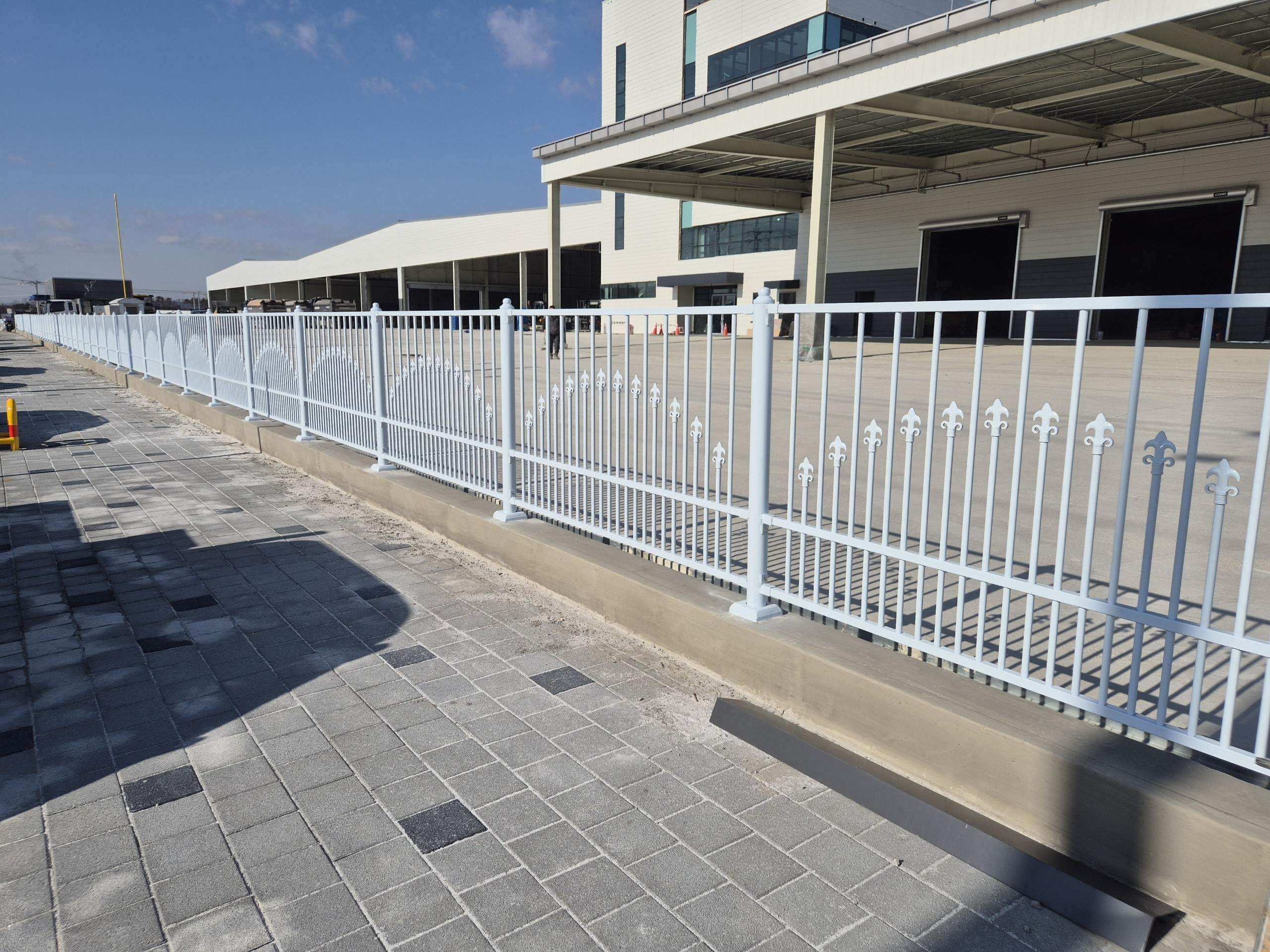창살형 자재를 사용해, 간결하지만 고급스러운 느낌을 줌. 미적안정감을 추구하며 다양한색상(녹색,흰색,검정색,기와진회색,밤색 등)을 사용 하여 건물이나 주변 환경에 맞춰 설치 가능한 휀스